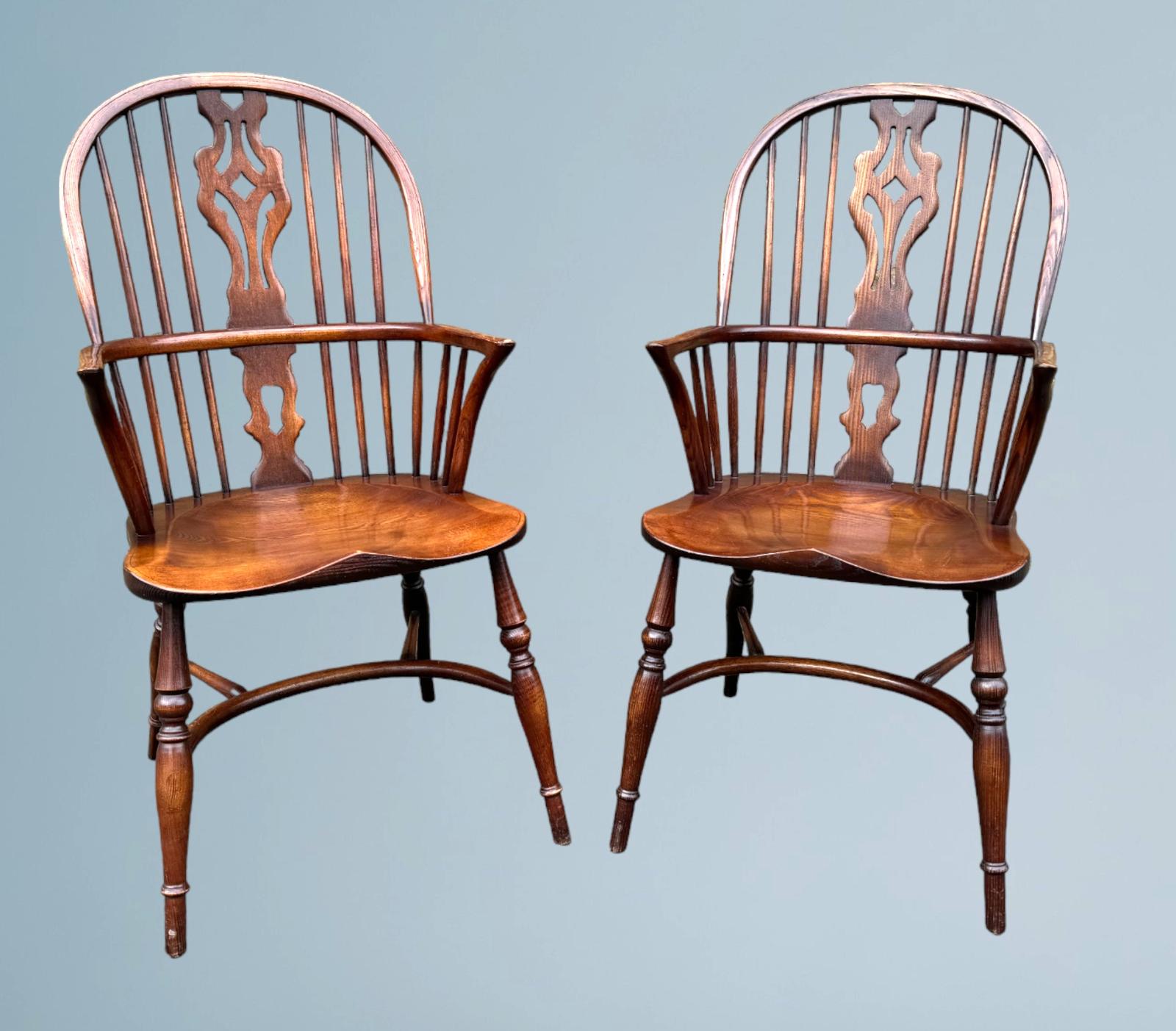 Pair of Elm Windsor Armchairs