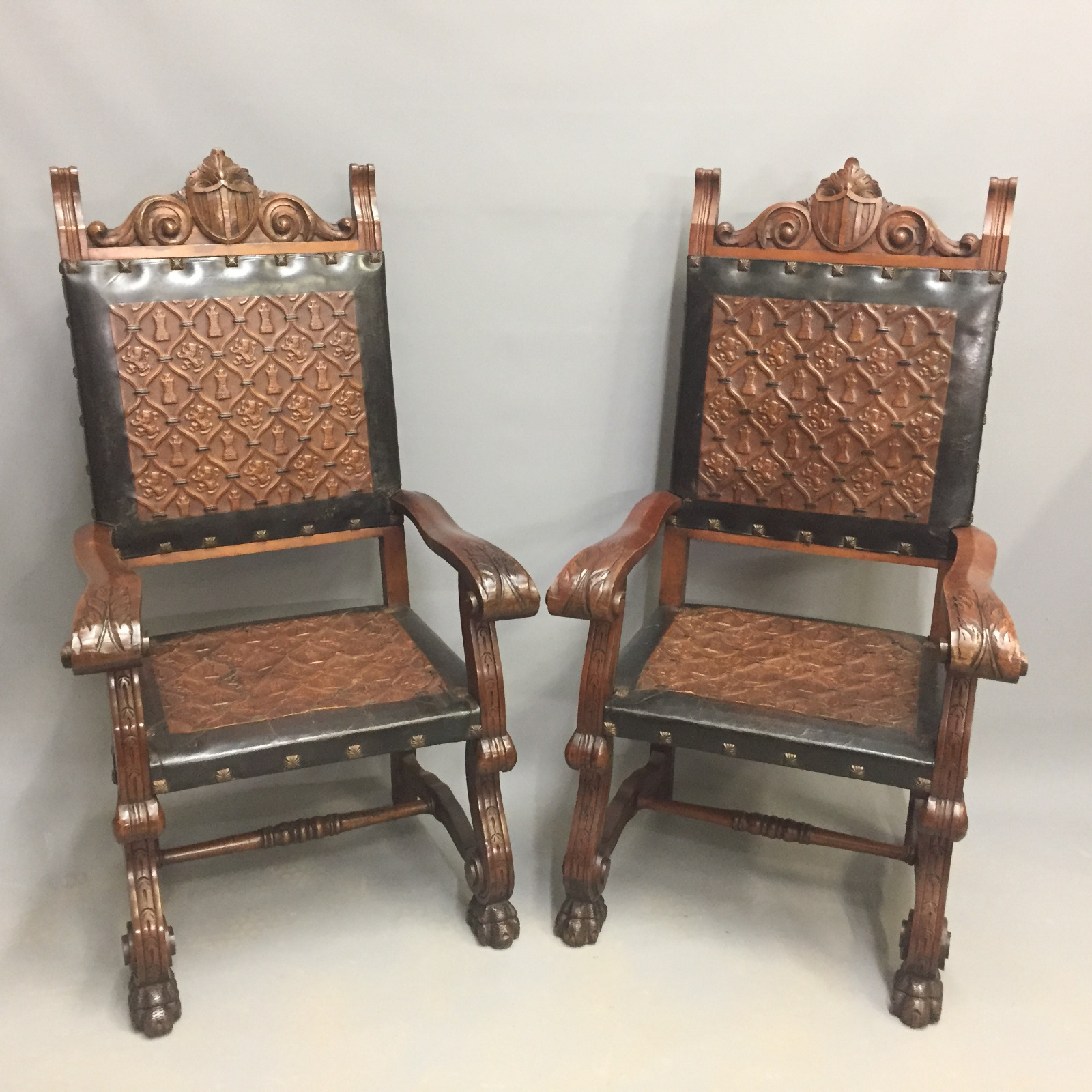 Pair of Embossed Leather 'Throne' Chairs