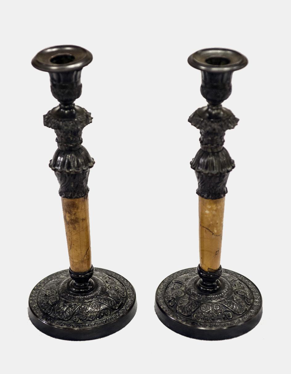 Pair Of Empire/Charles X Siena Marble And Bronze Candlesticks