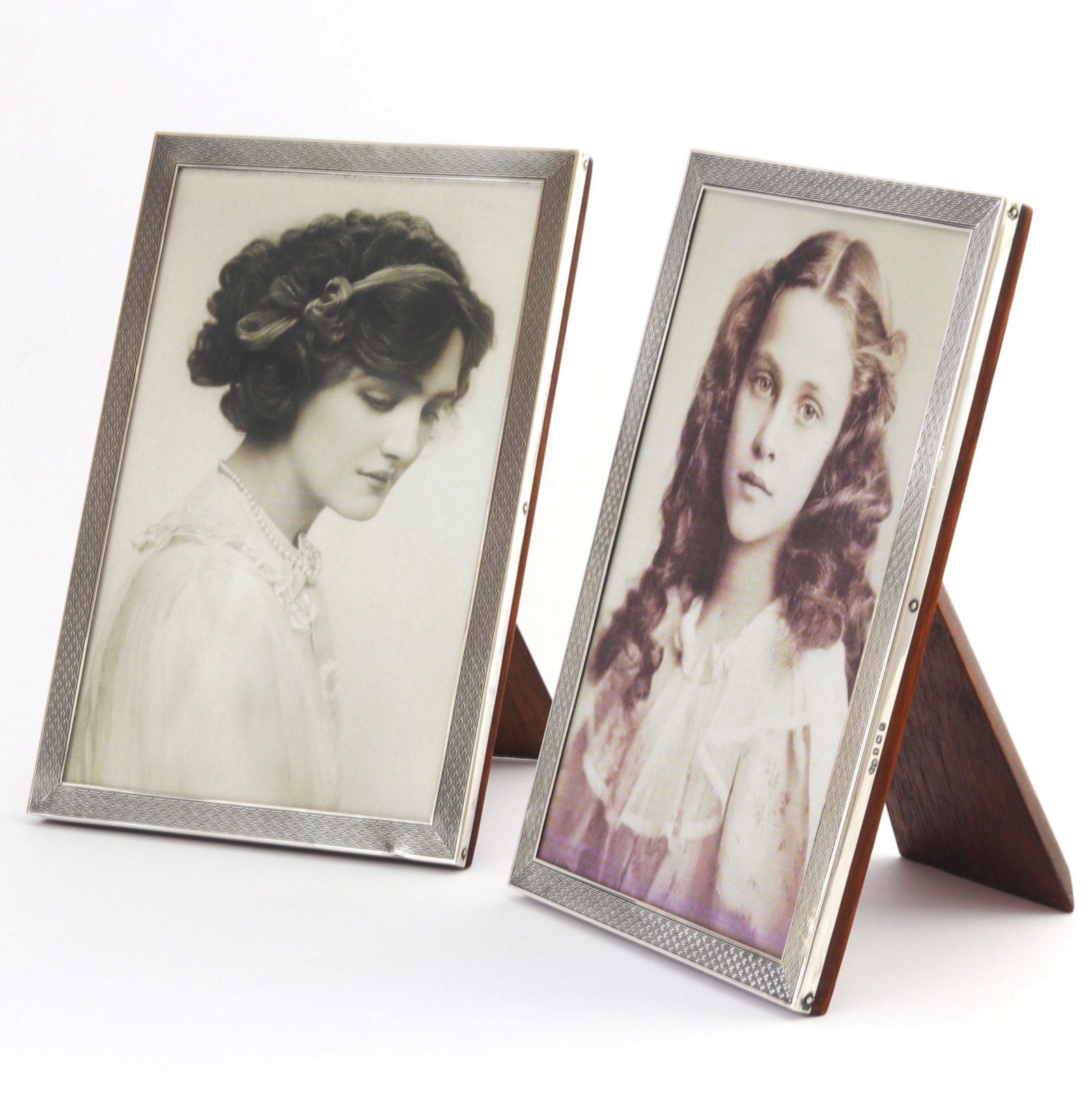 Pair of Engine Turned Silver Photo Frames by Sanders & Mackenzie Birmingham 1927 (1 of 1)