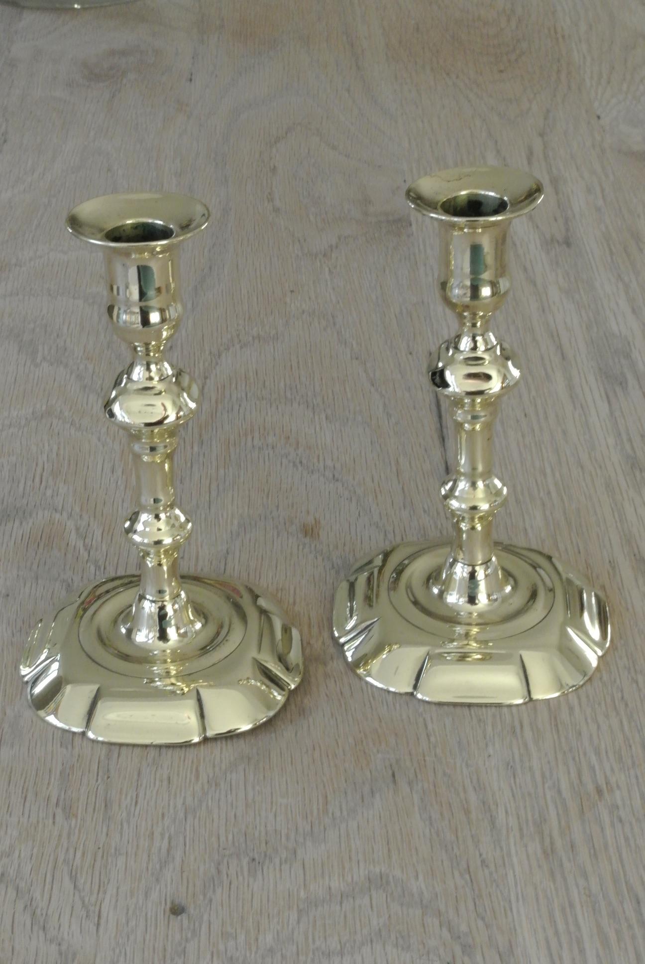 Pair of English 18th Century Brass Candlestick with Seam to Stem