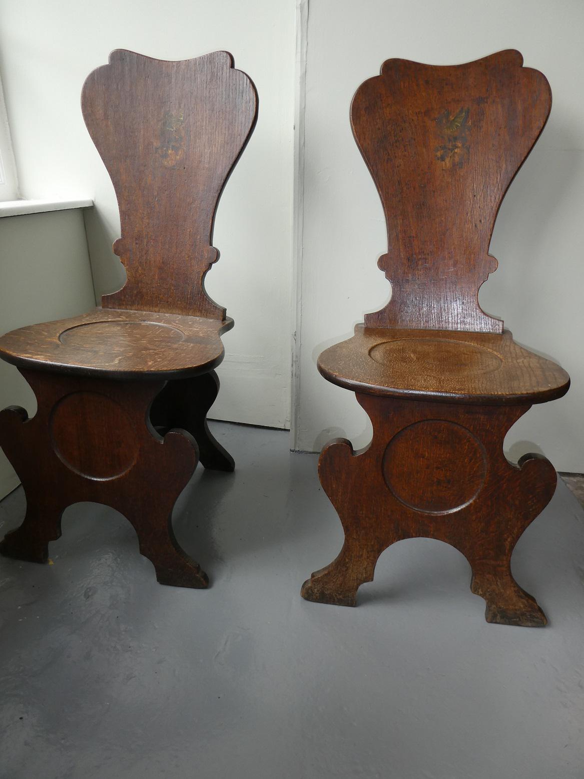Pair of English 18th Century Oak Hall Chairs (1 of 9)
