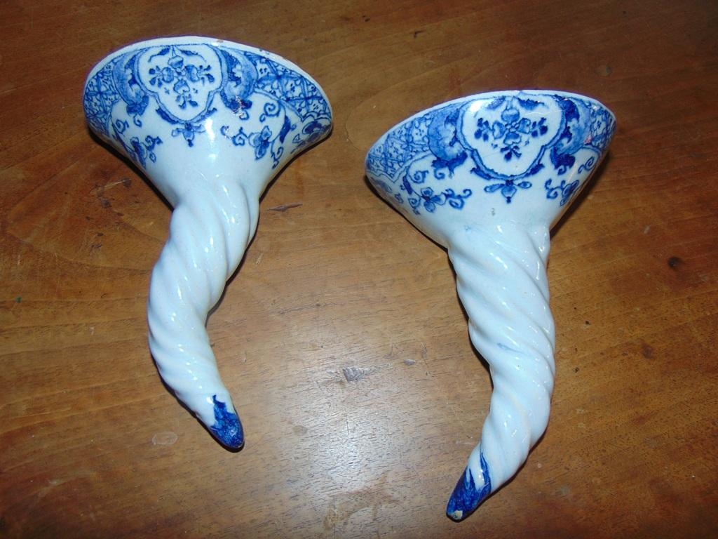 Pair of English Delft Wall Pockets - 18th Century