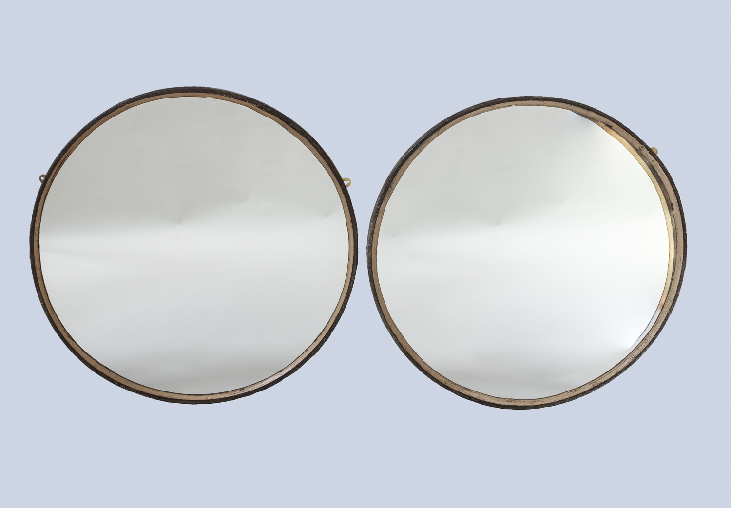 Pair of English Iron Cartwheel Framed Round Mirrors