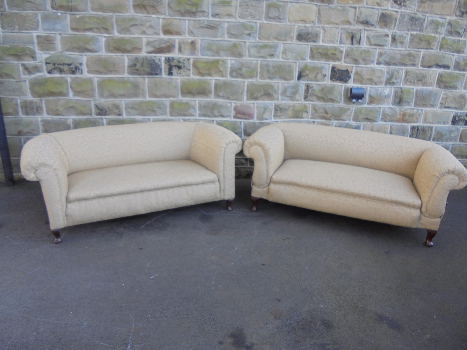 Pair of English Upholstered Country House Chesterfield Sofas c.1900