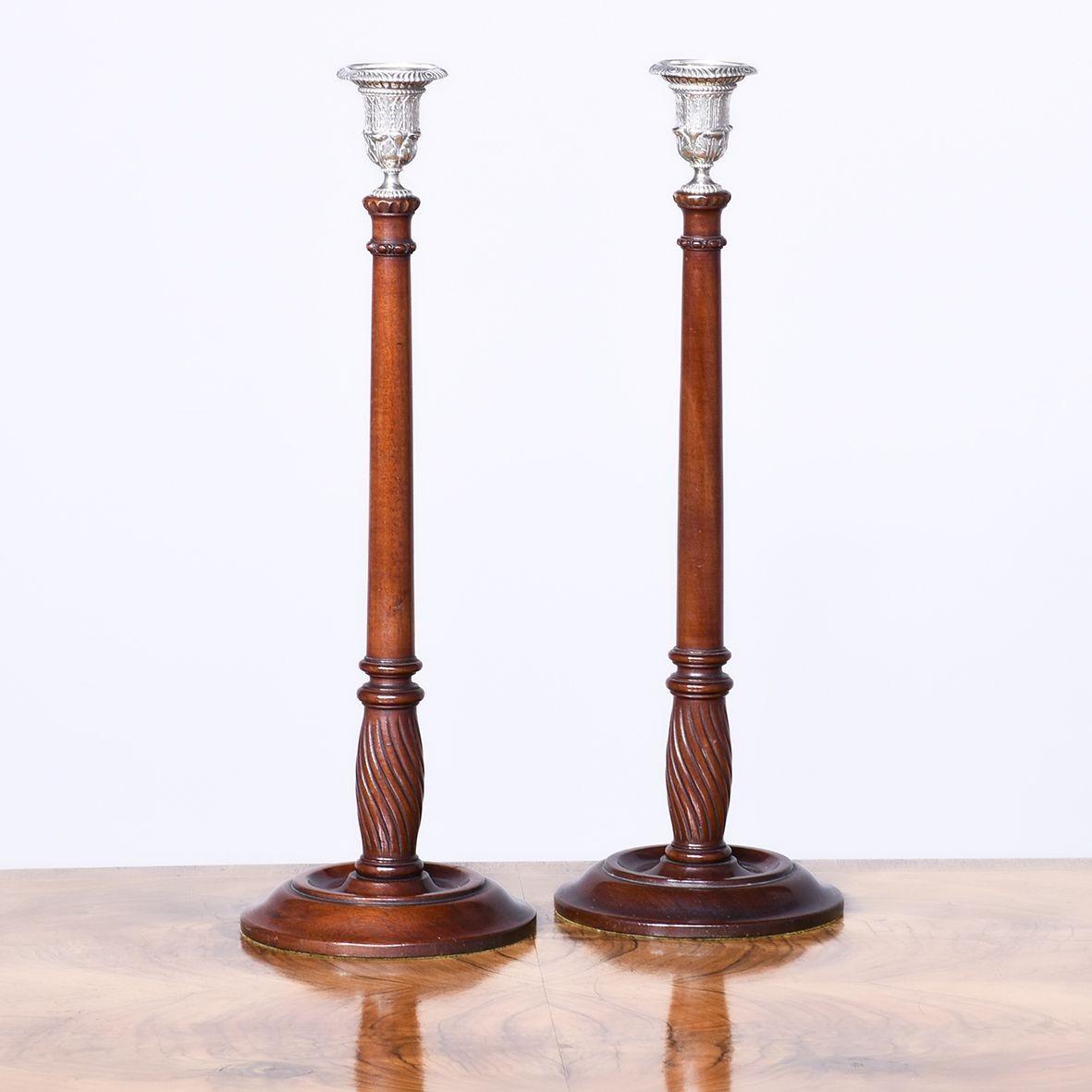 Pair of Epns and Mahogany Candlesticks (1 of 6)