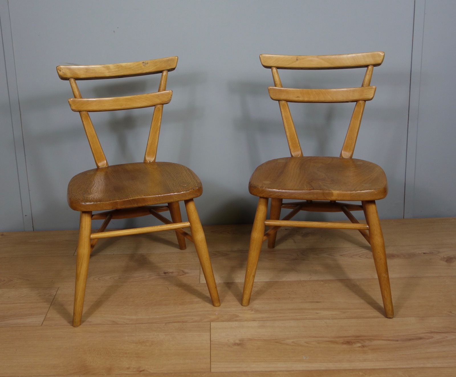 Pair of Ercol Yellow Dot Stacking Children’s Chairs
