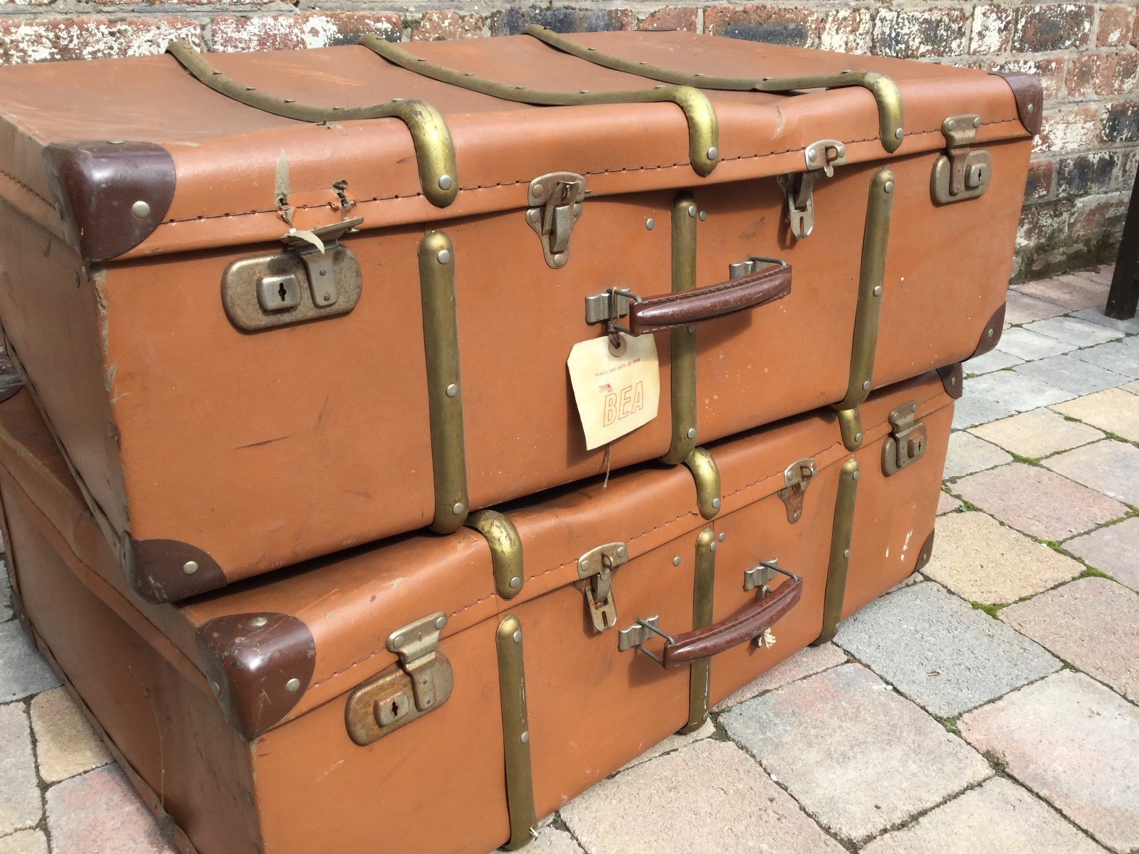 Pair of Extra Large Brass Bound Steamer Suitcases