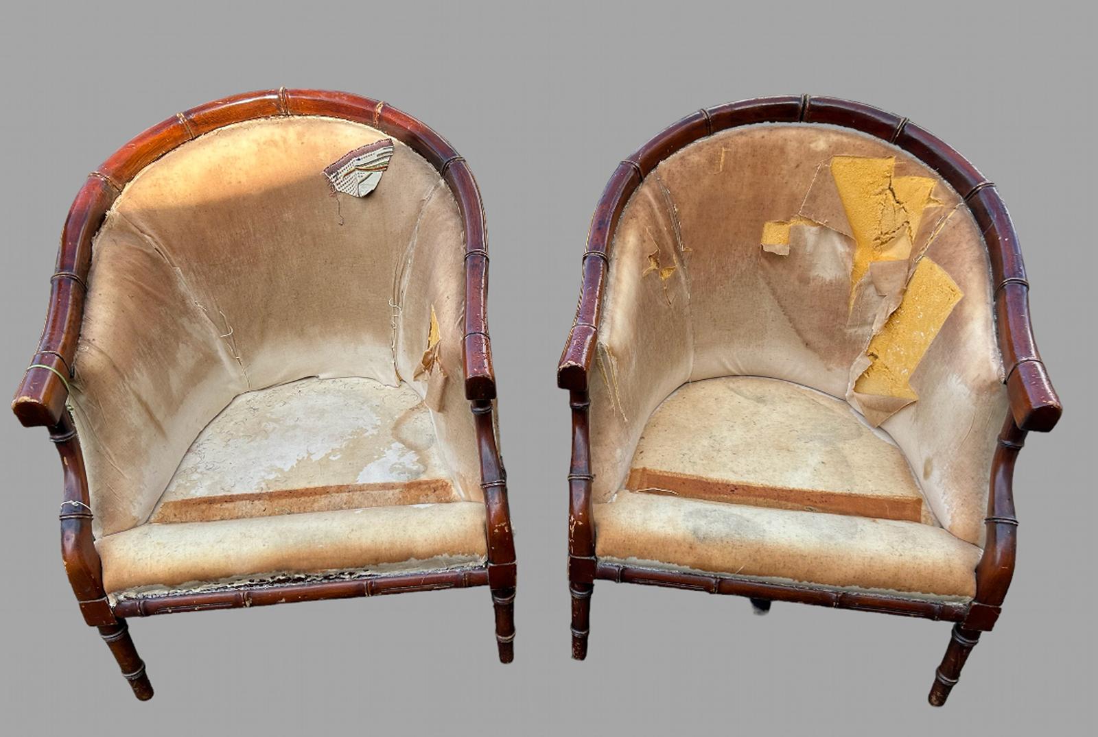 Pair of Faux Bamboo Tub Armchairs for Re Upholstery