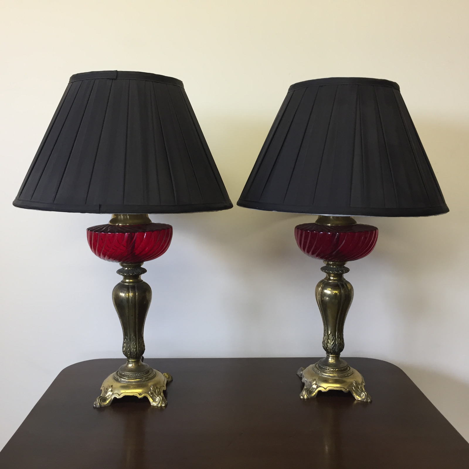 Pair of Faux Oil Lamps c.1950 (1 of 3)