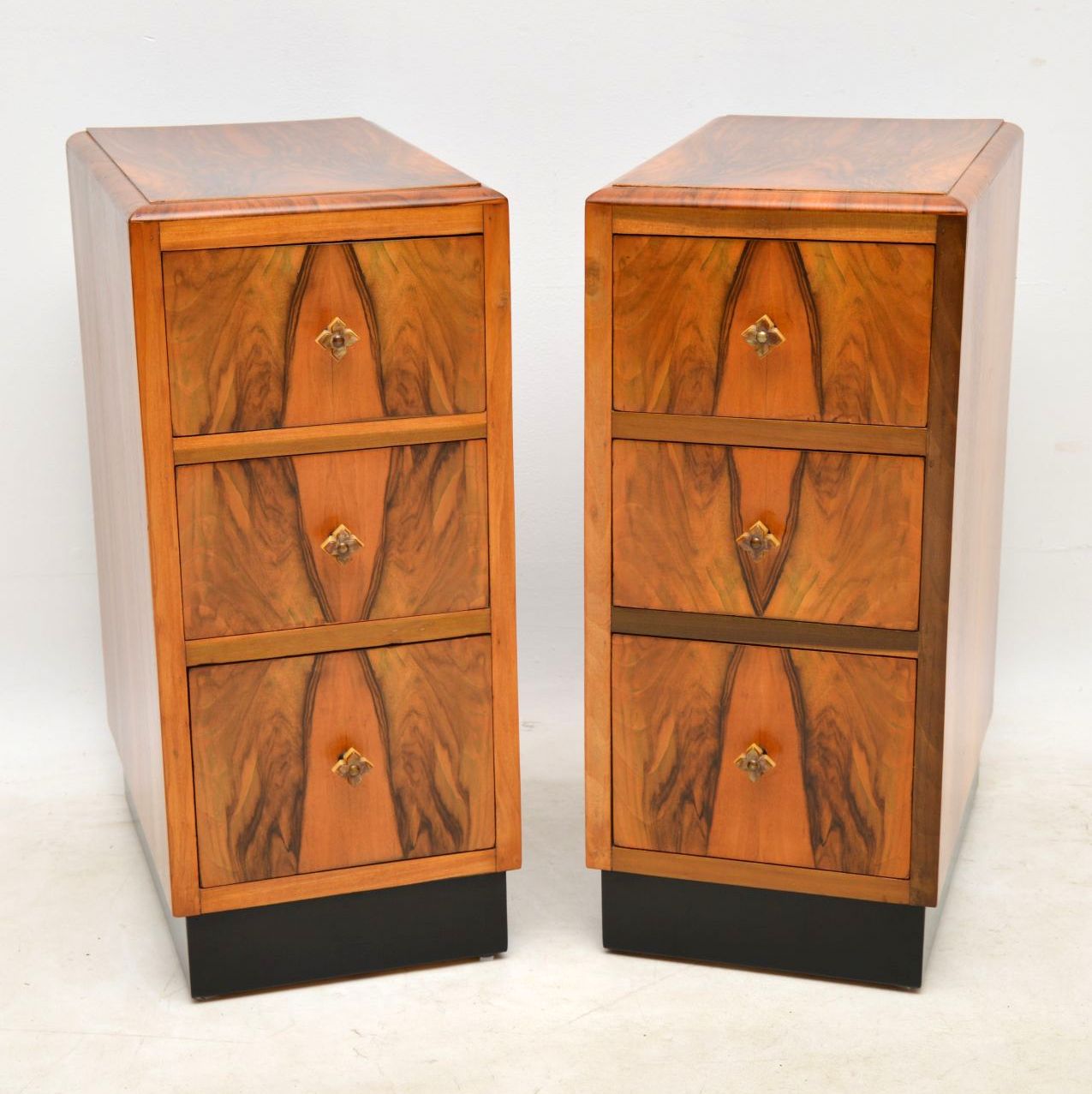 Pair of Figured Walnut Art Deco Bedside Cabinets