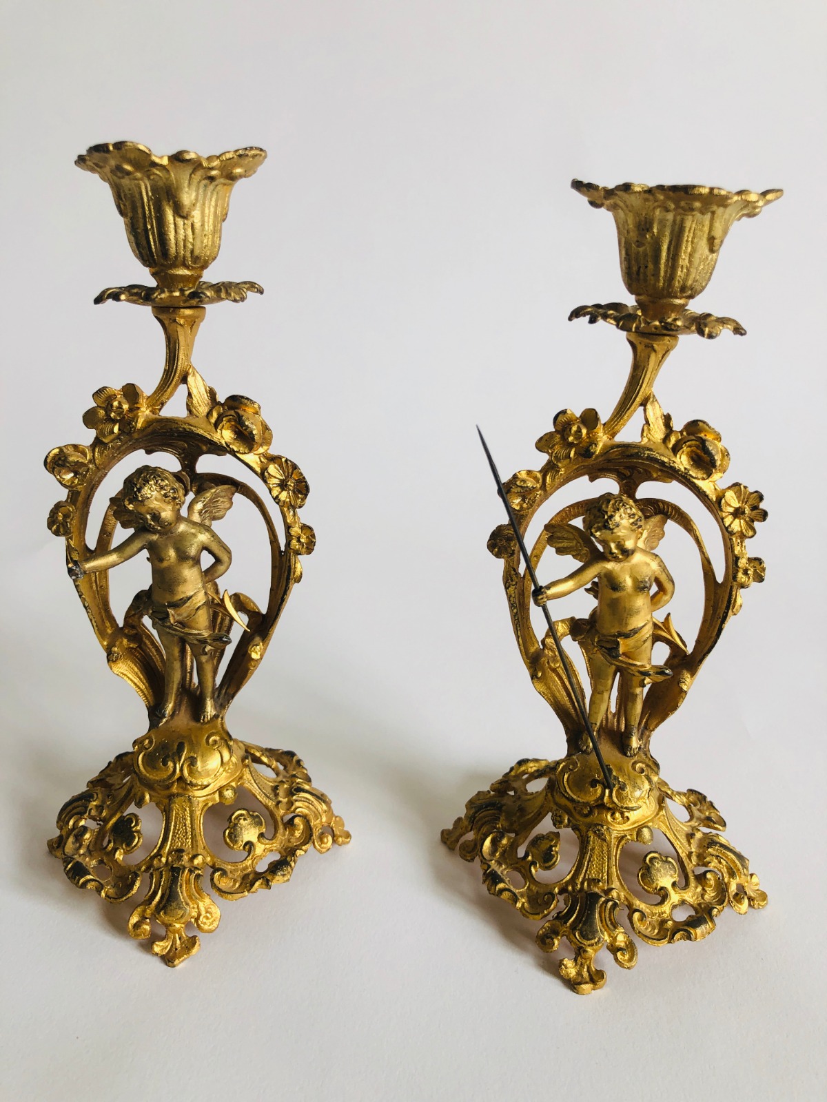 Pair of Fine French Victorian Ornate Gilded Candlesticks (1 of 3)