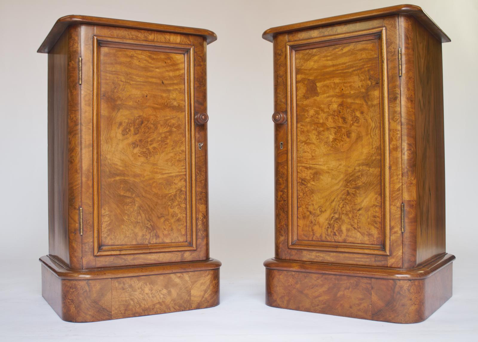 Pair of Fine Victorian Burr Wanut Bedside Cupboards