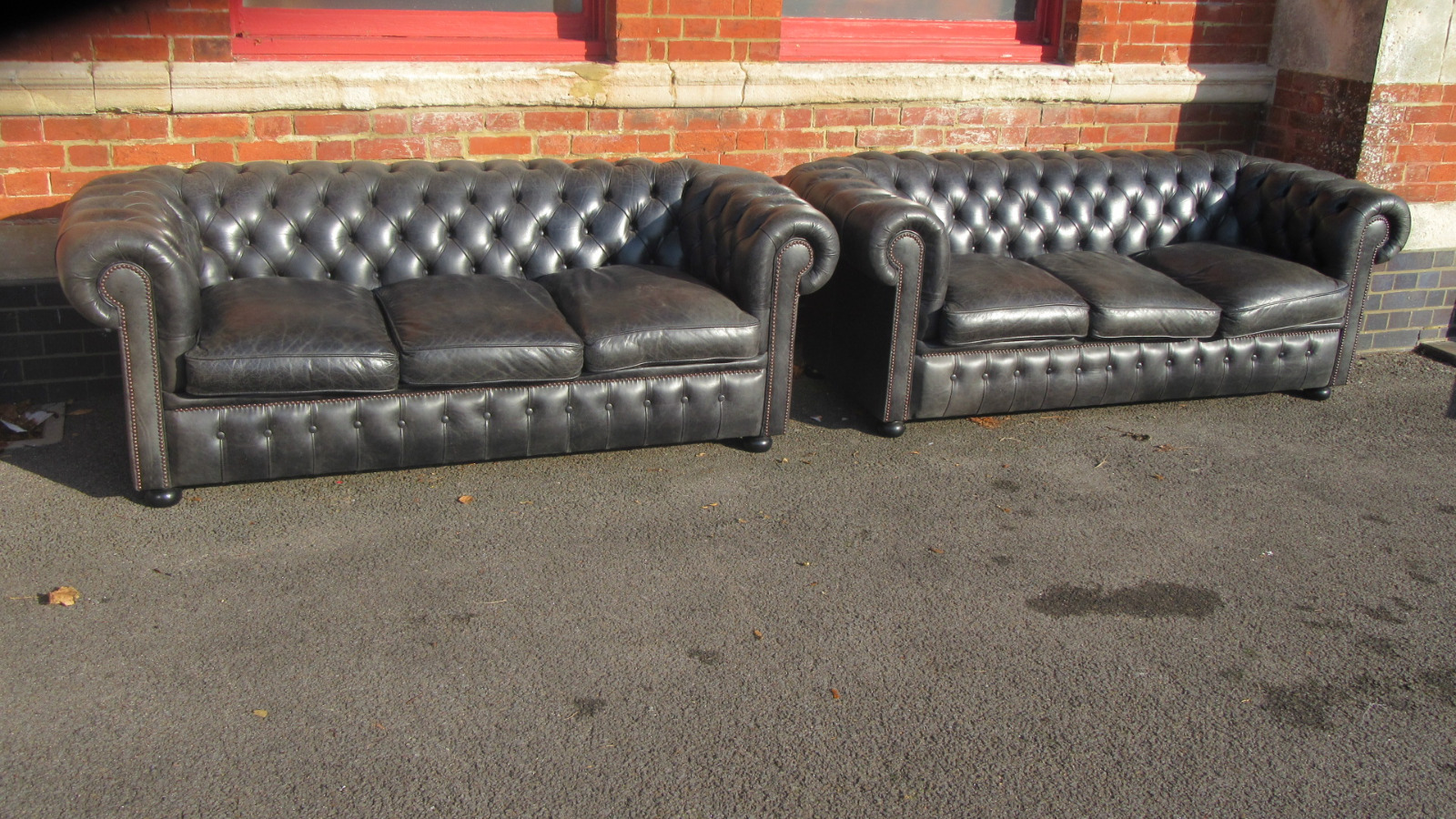 Pair of Fleming & Howland Leather Chesterfield Sofas