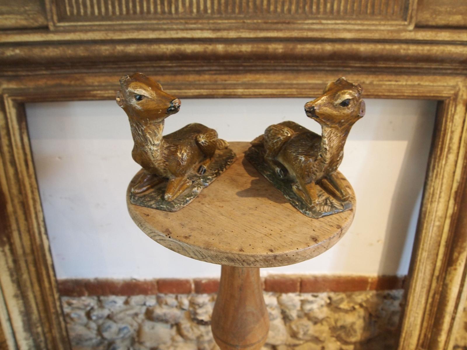 Pair of Folk Art Carved Limewood Swiss Black Forest Fawns c.1900