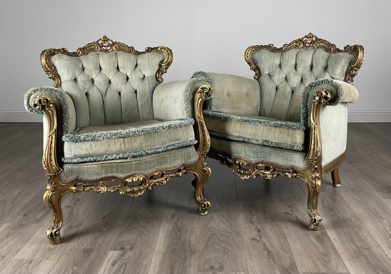 Pair of French 19th Century Antique Gilded Armchairs (1 of 13)