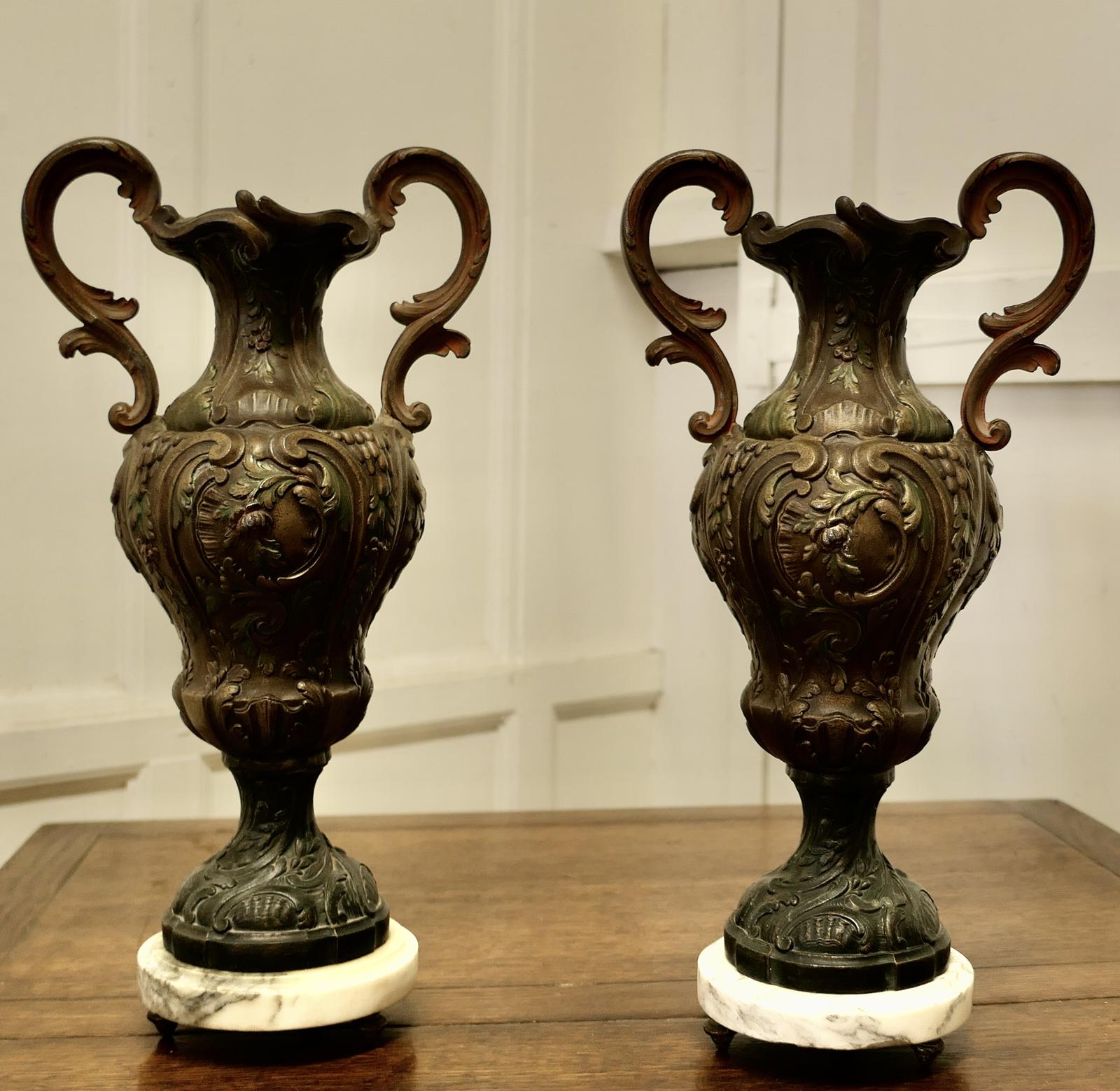 Pair of French 19th Century Neo Classical Bronzed Spelter Vases