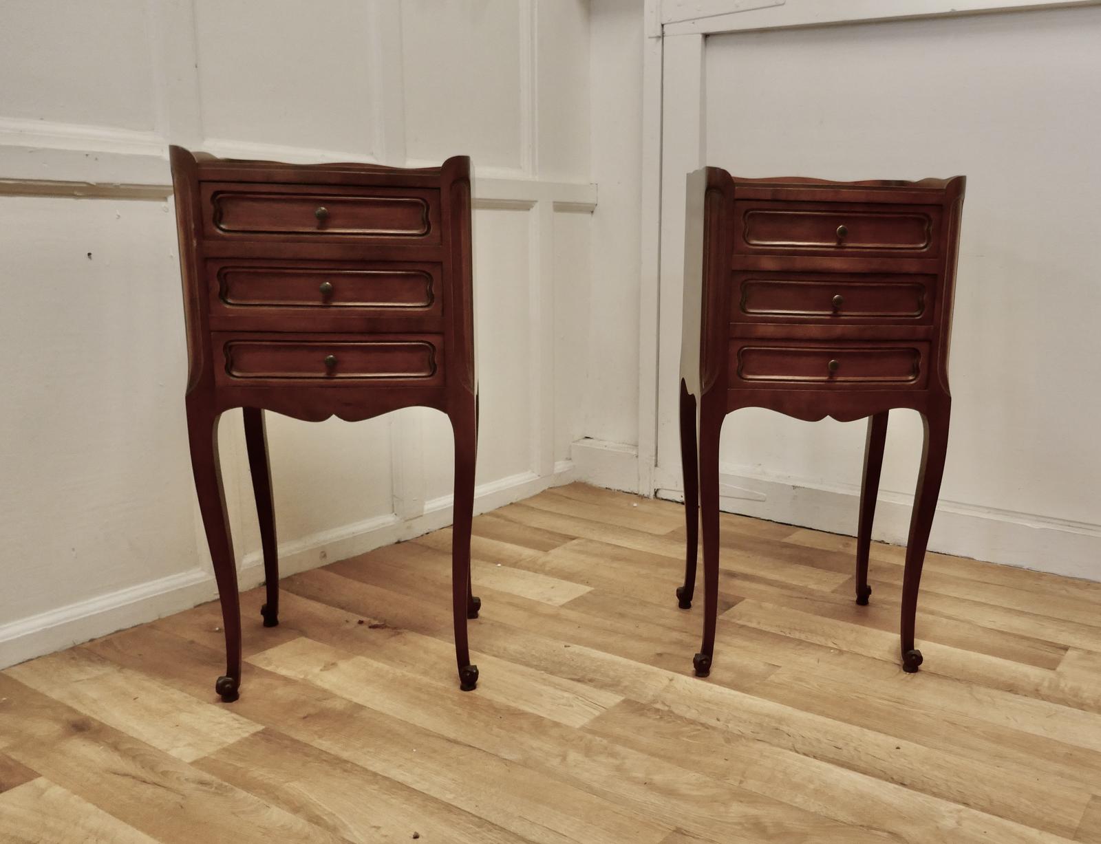 Pair of French 3 Drawer Cherry Wood Bedside Cabinets