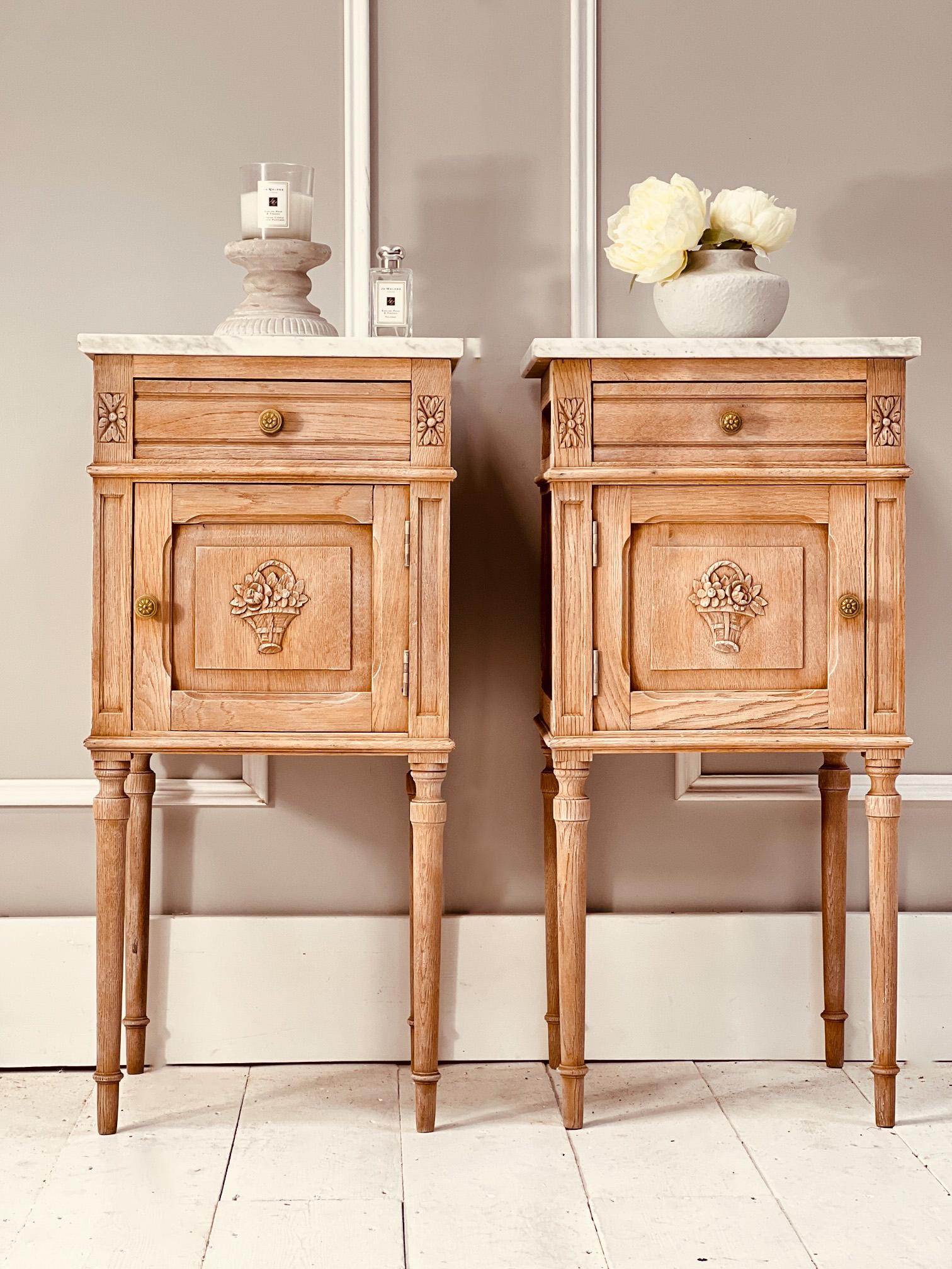 Pair of French Antique Marble Bedsides / Cabinets / Nightstands