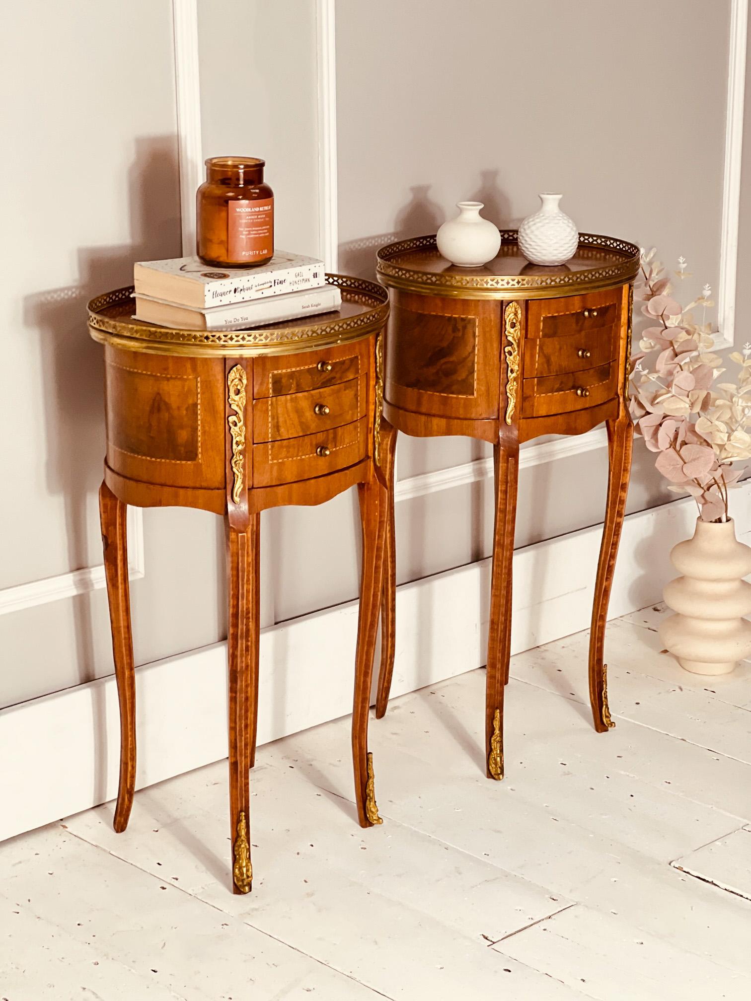 Pair of French Antique Side Tables / Walnut Bedsides