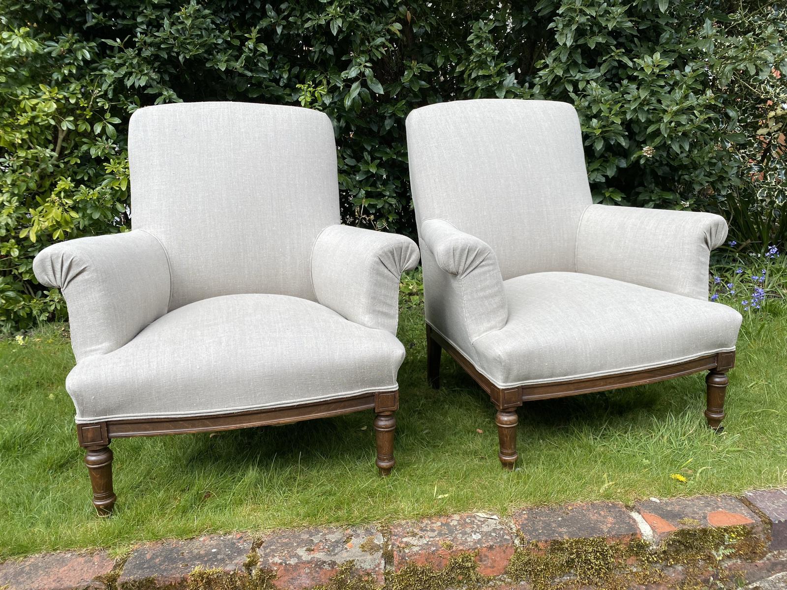 Pair of French Armchairs in a Quality Grey Linen