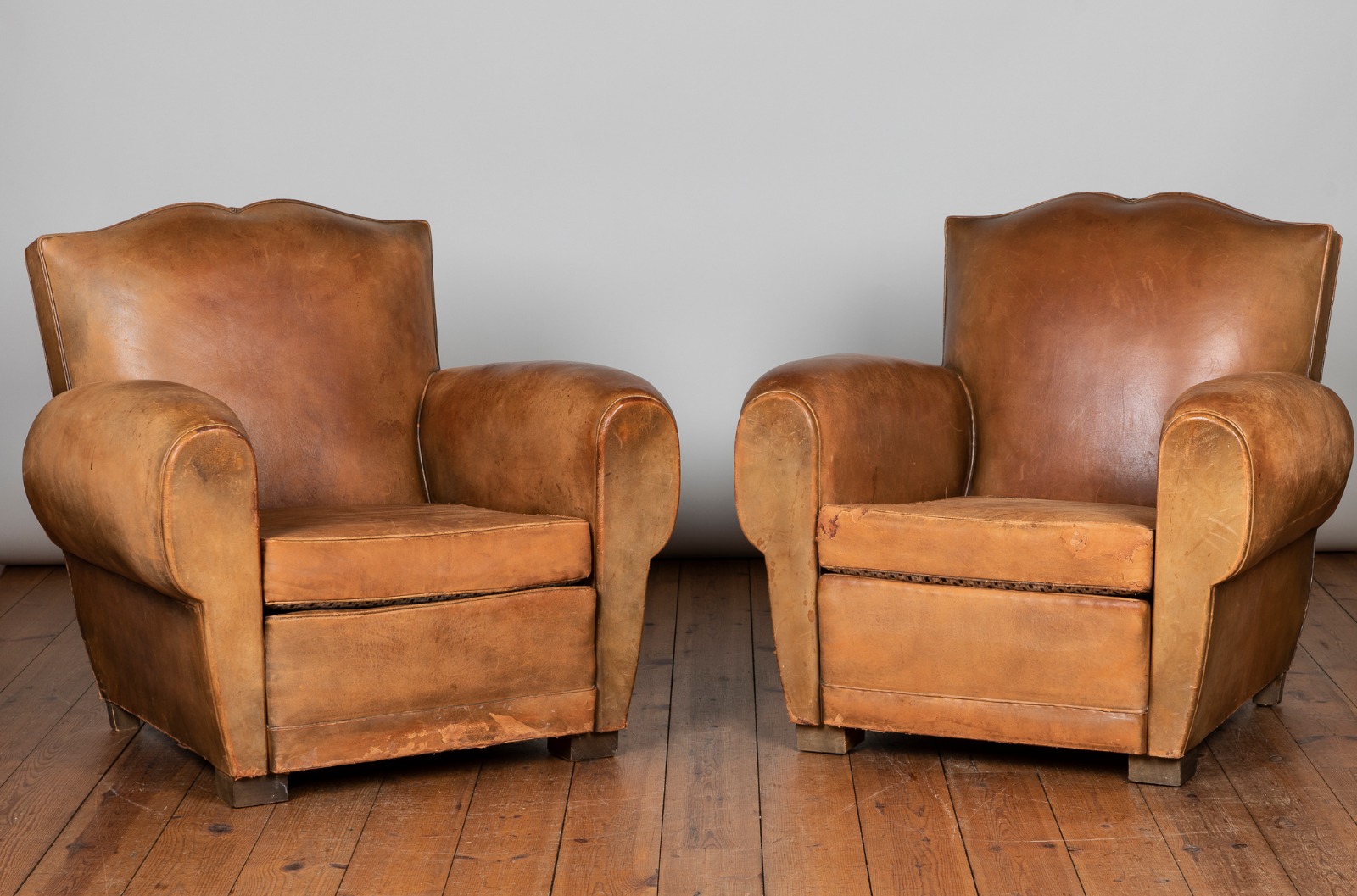 Pair of French Art Deco Leather Armchairs (1 of 1)