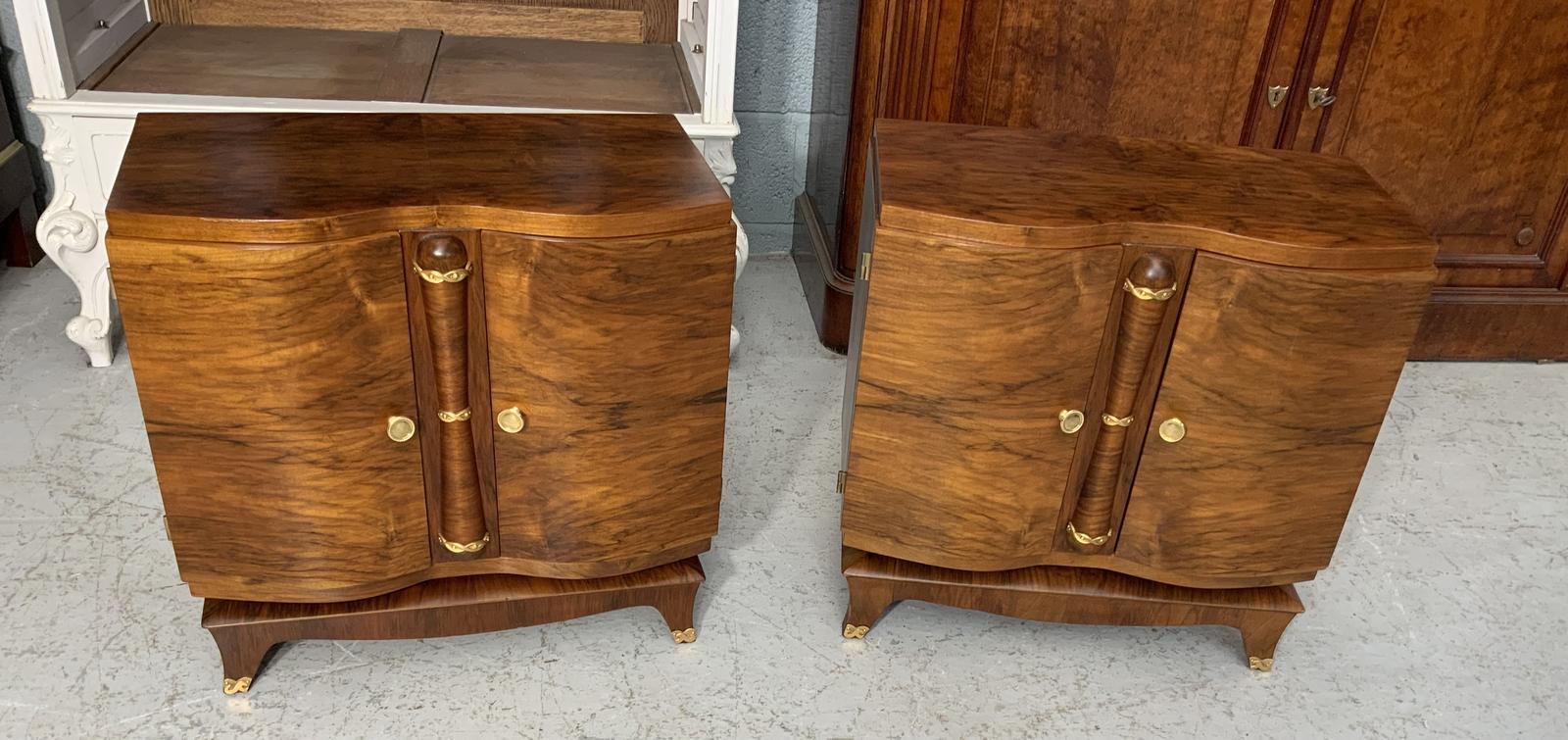 Pair of French Art Deco Walnut Bedside Cabinets