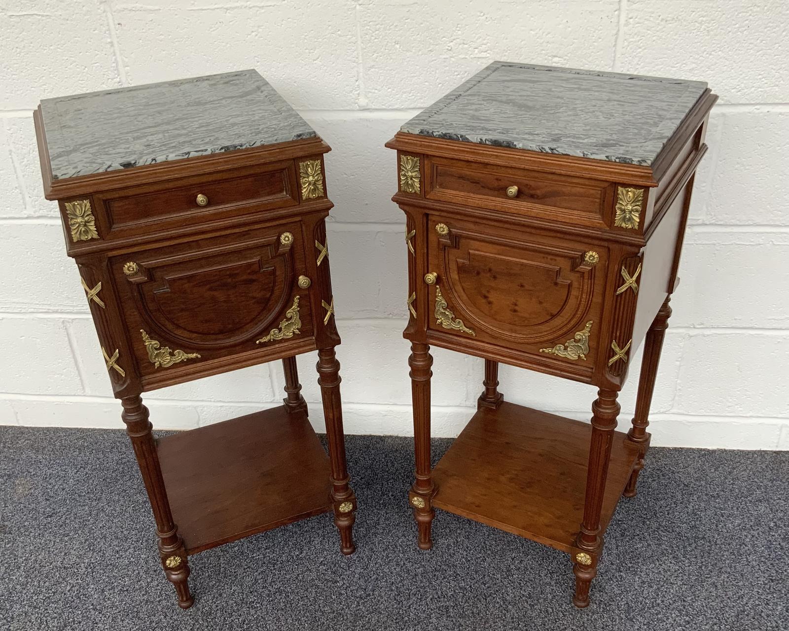 The brass embellishments are of the highest quality and the cabinets retain their original marble tops and internal marble lined cupboards.