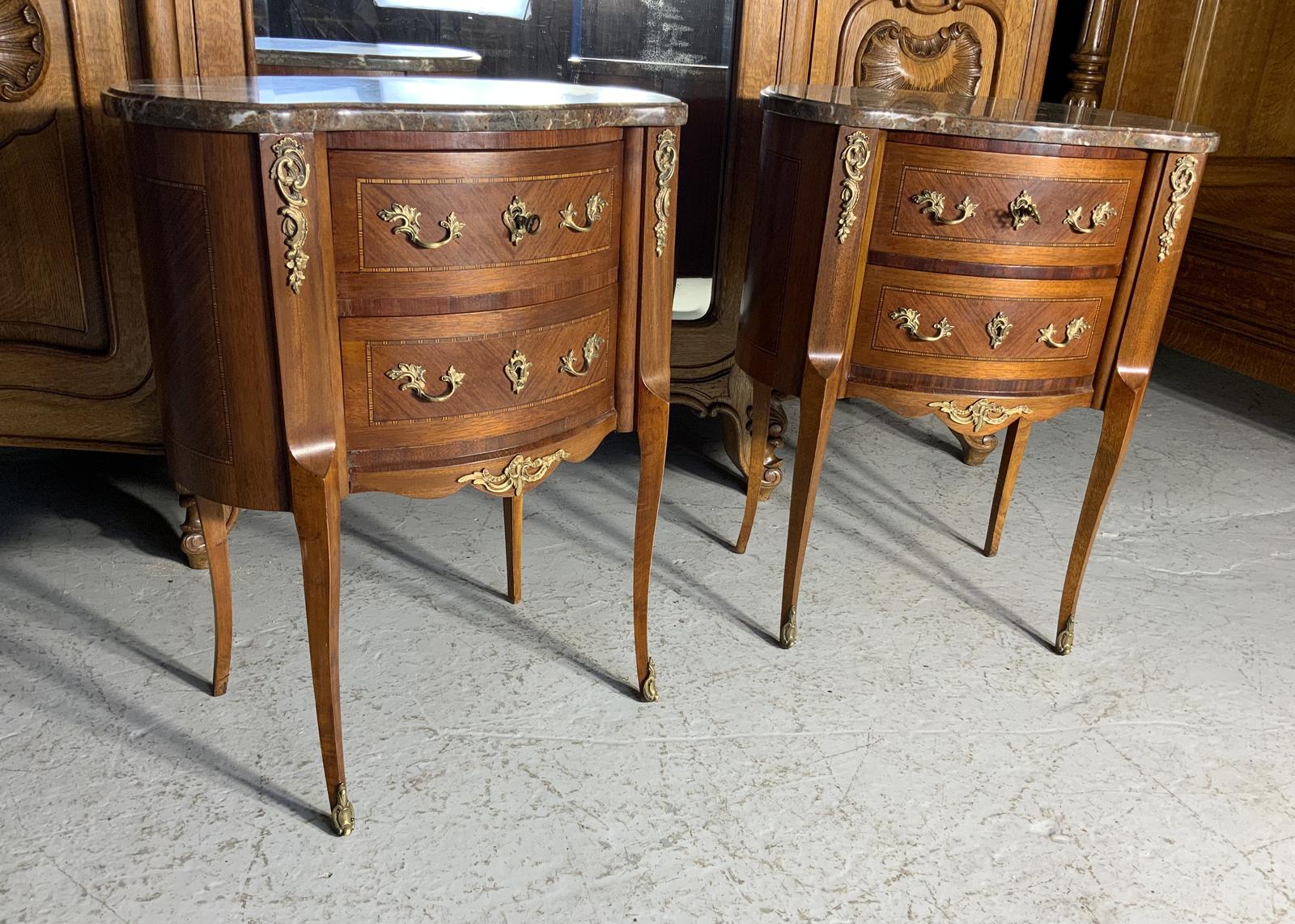 Pair of French Bedside Cabinets With Kidney Shaped Marble Tops (1 of 9)