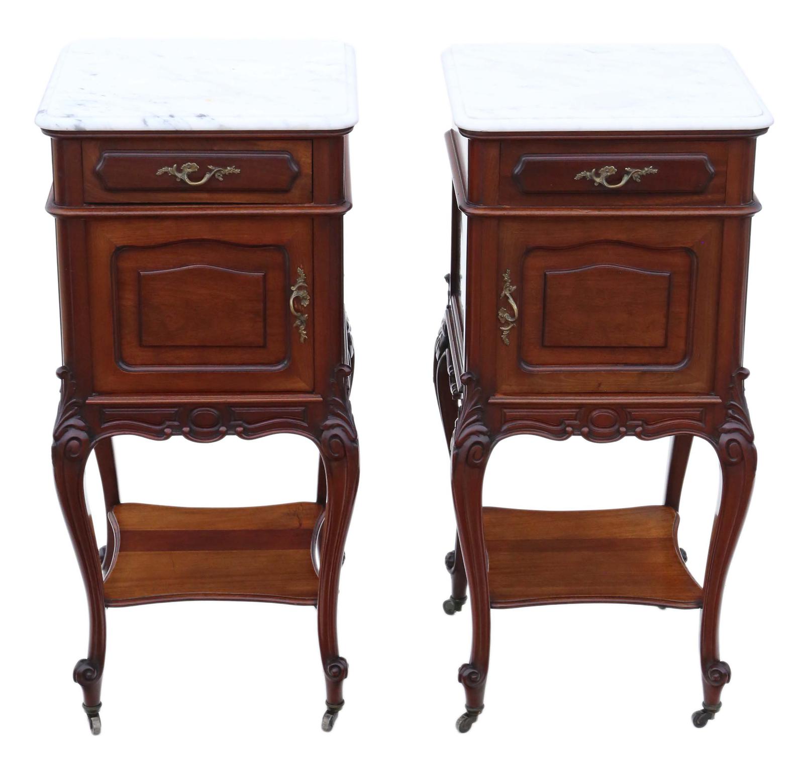 Pair of French Bedside Tables Cupboards Marble Tops (1 of 9)