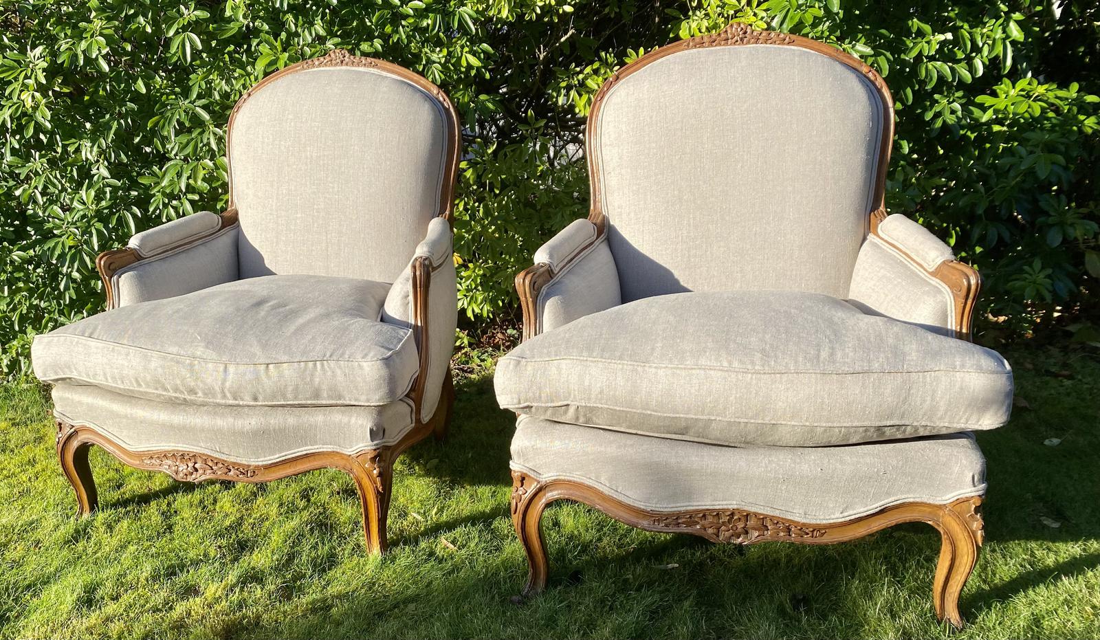 Pair of French Bergere Armchairs in Carved Oak (1 of 6)