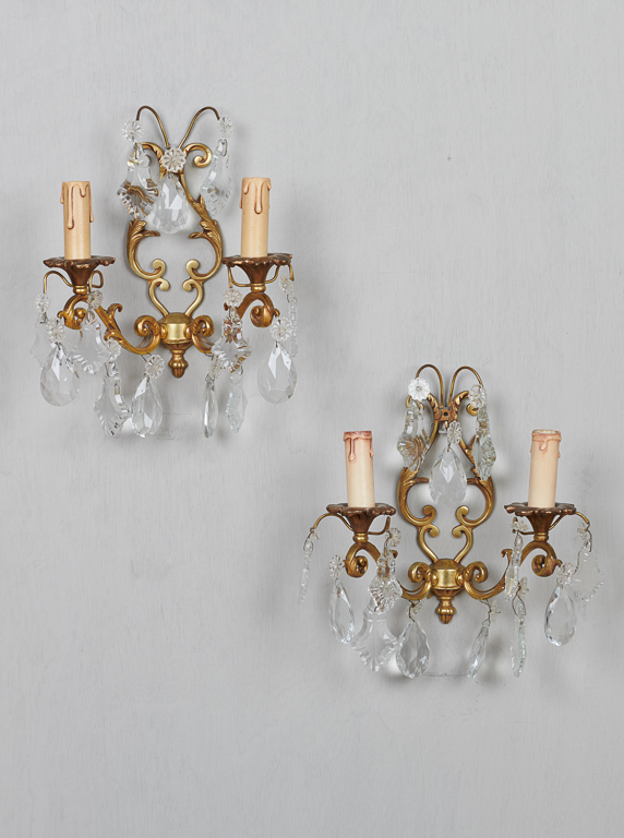 Pair of French Brass & Glass Wall Sconces (1 of 3)