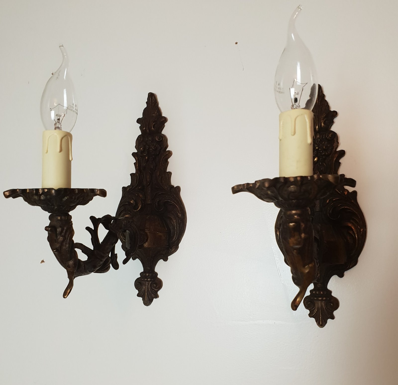 Pair of French Bronzed Brass Wall Lights, Rewired c.1930