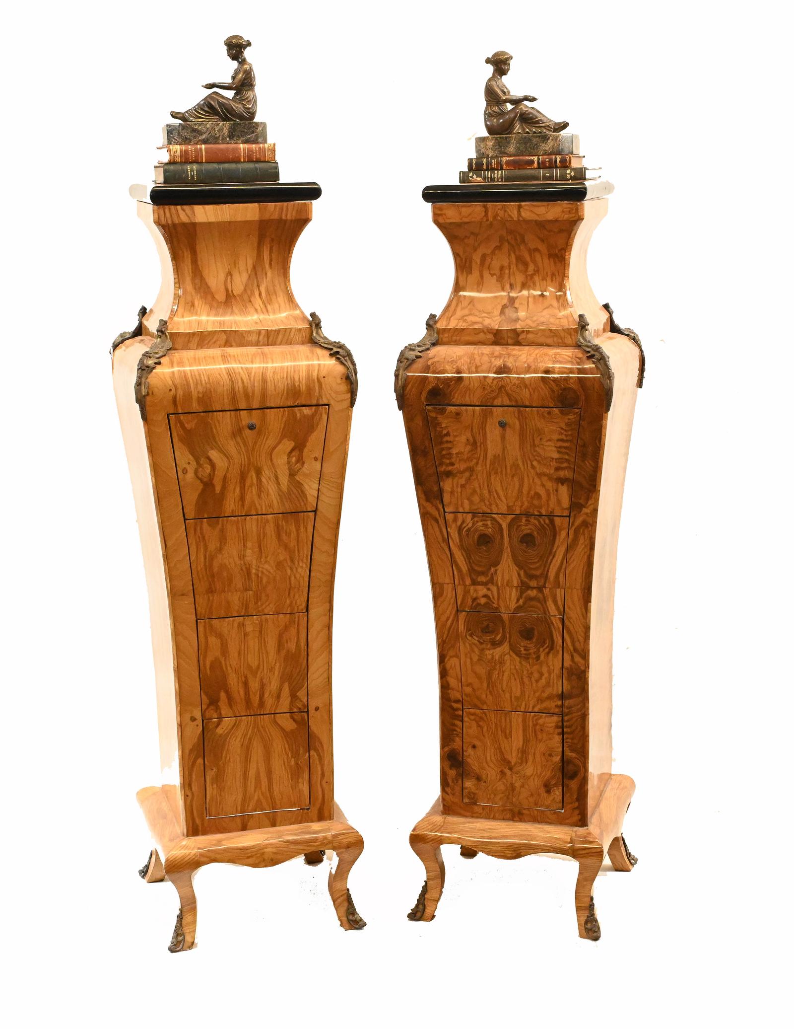 Pair of French Cartonnier Pedestal Stands Burr Walnut Empire