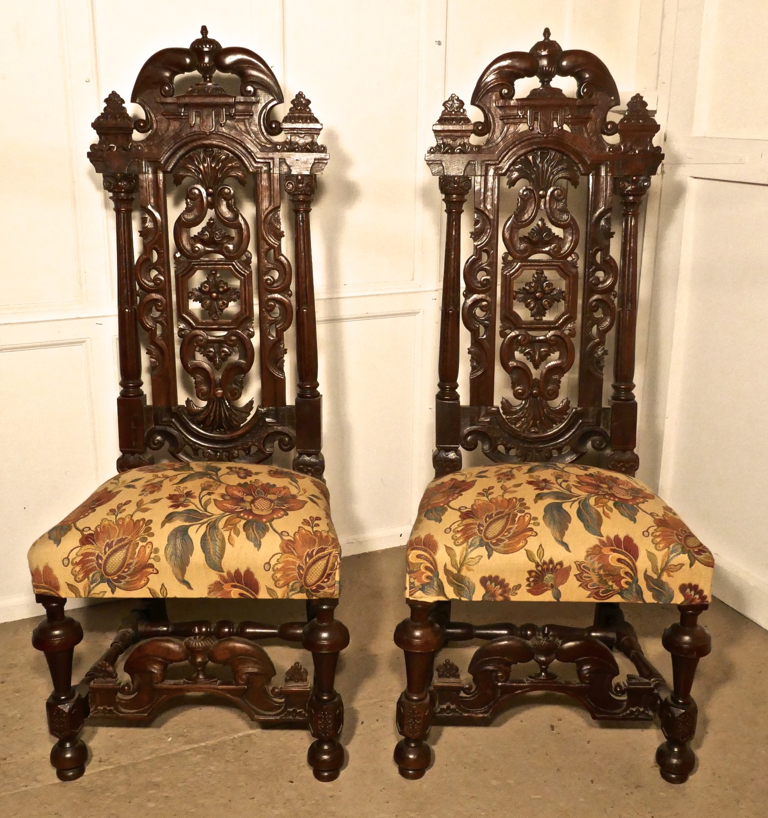 Pair of French Carved Oak Hall Chairs, Wedding Thrones