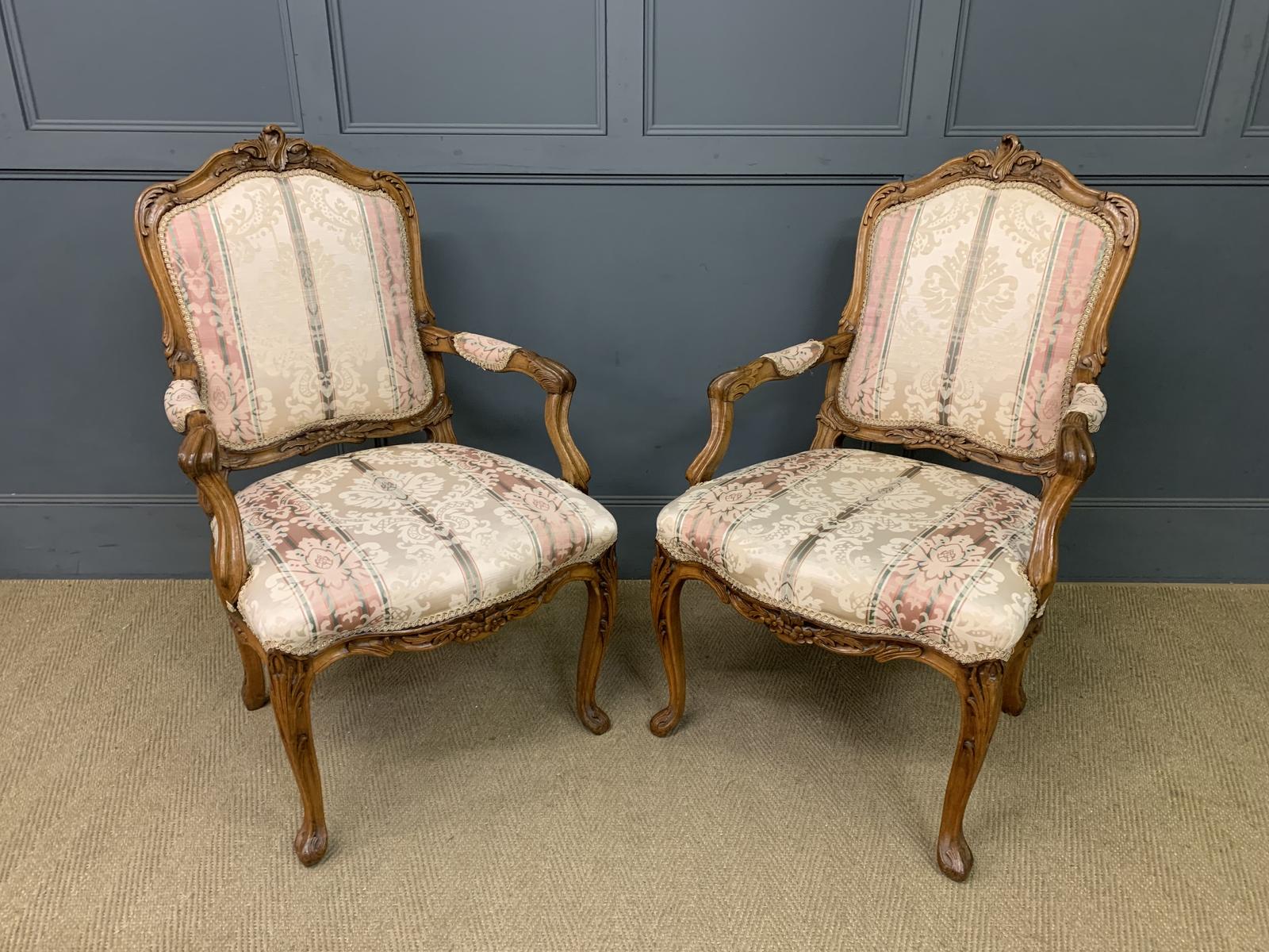 Pair of French Carved Walnut Armchairs