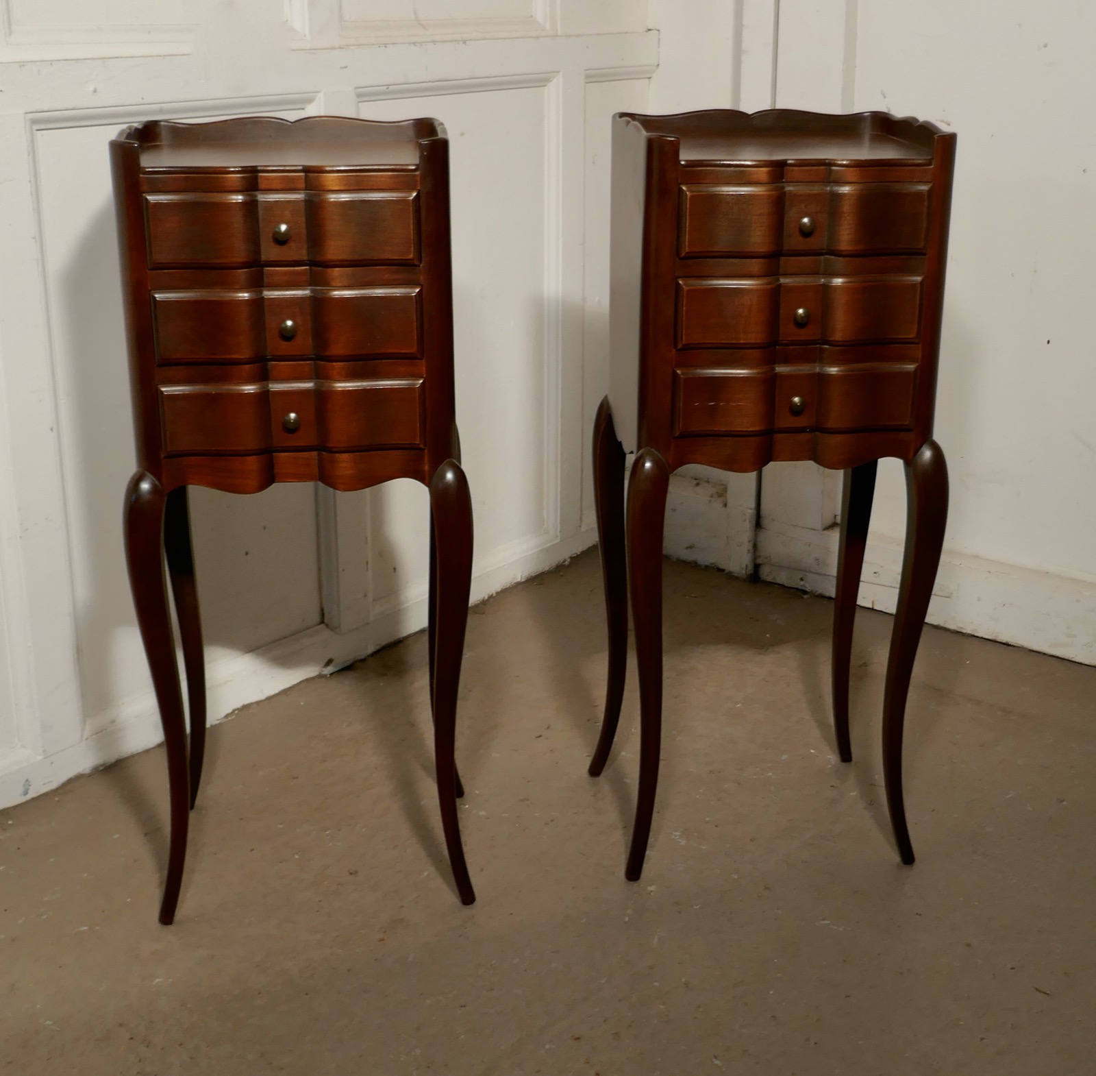 Pair of French Dark Walnut Bedside Cabinets with Drawers