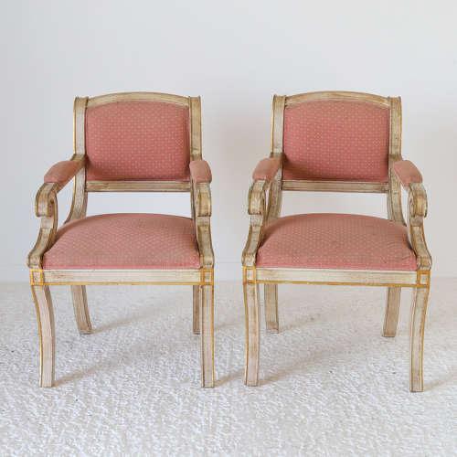 Pair of French Empire Style Armchairs c.1920 Creamy Colour Paint Finish