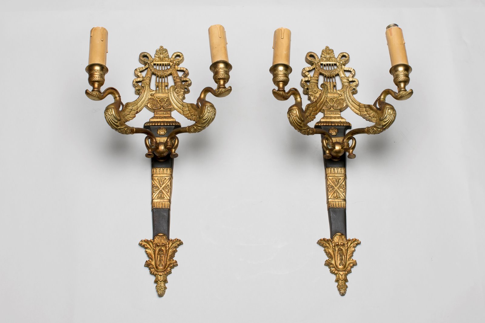 Pair of French Empire Style Ormolu Wall Sconces (1 of 1)