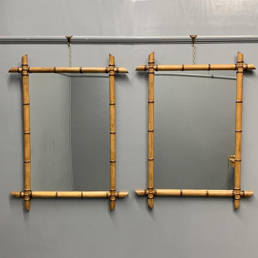 Pair of French Faux Bamboo Mirrors