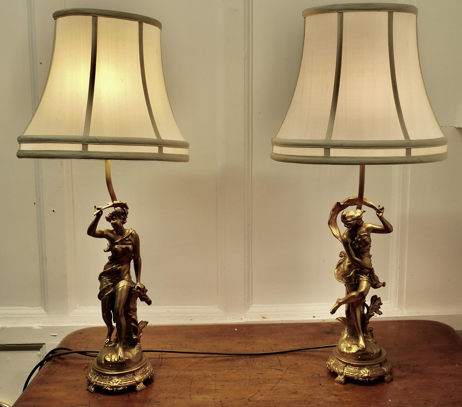 Pair of French Figural Brass Lamps, Ernest Justin Ferrand
