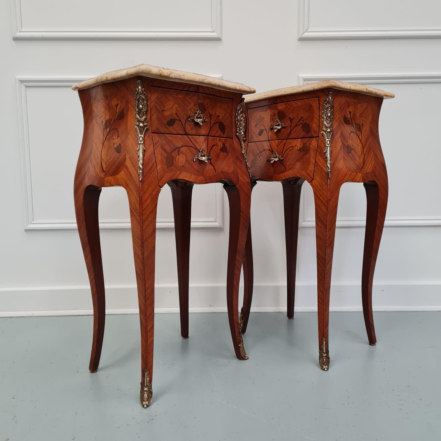 Pair of French Floral Marquetry Bedside Tables c.1930