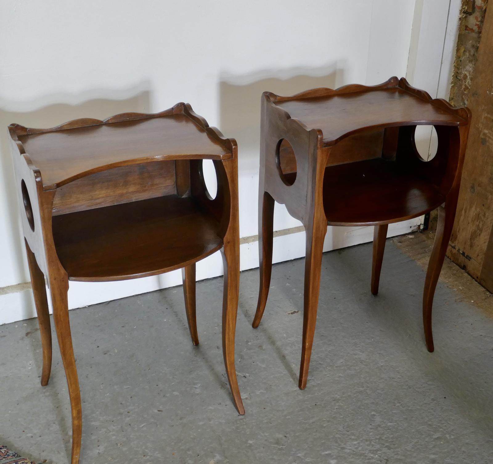 Pair of French Fruitwood Open Bedside Cabinets
