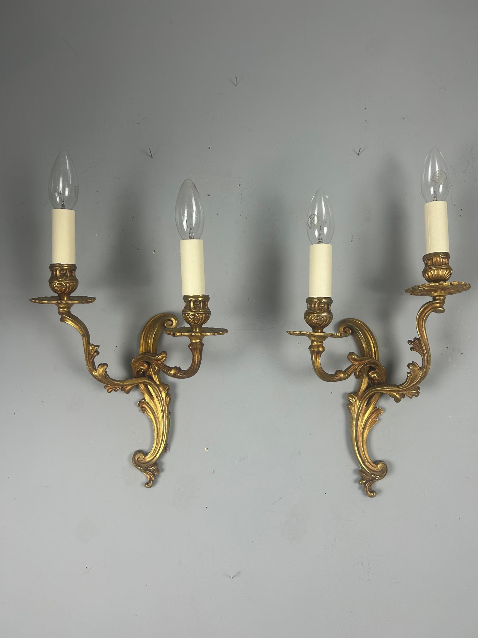 Pair of French Gilded Twin Arm Wall Lights