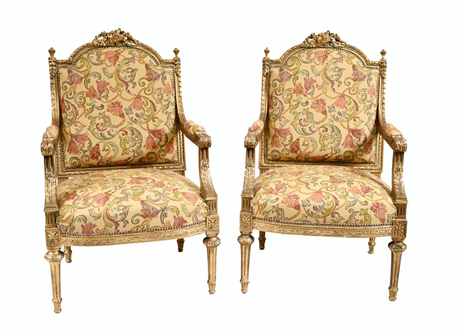Pair of French Gilt Armchairs Antique Fauteuil c.1900