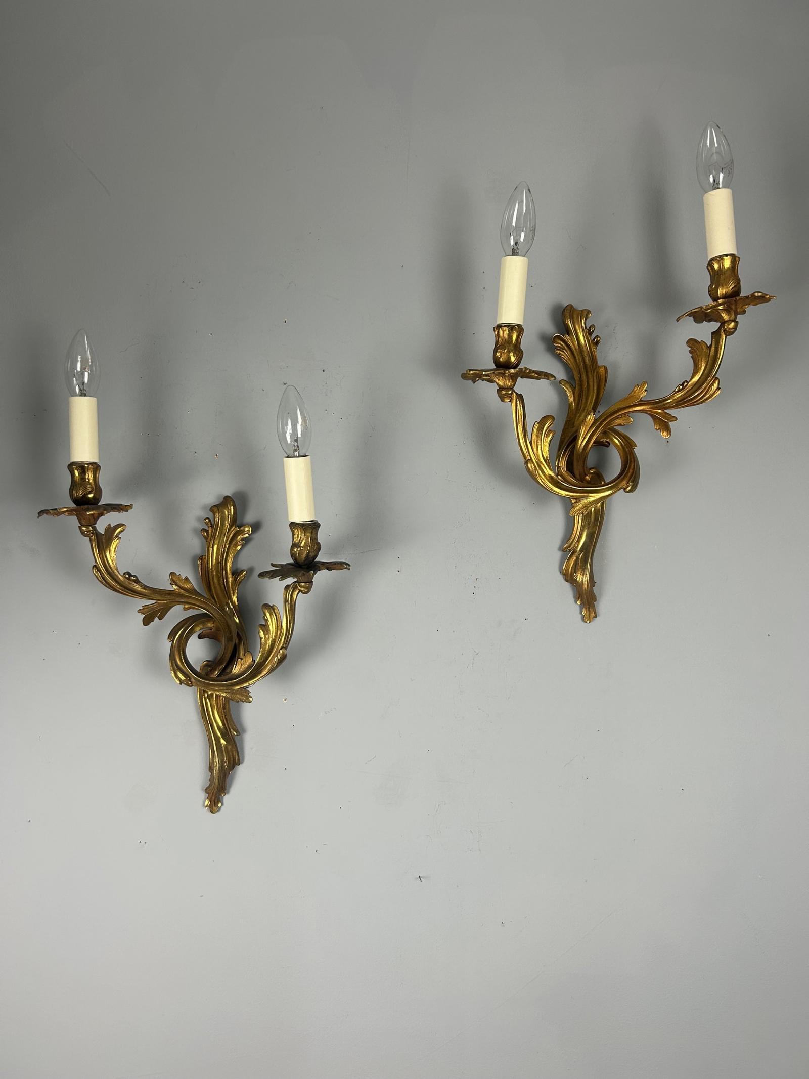 Pair of French Gilt Brass Wall Lights
