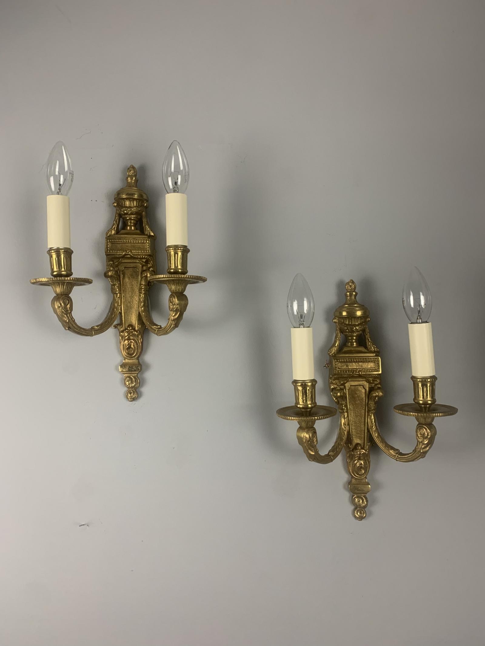 Pair of French Gilt Brass Wall Lights - Rewired