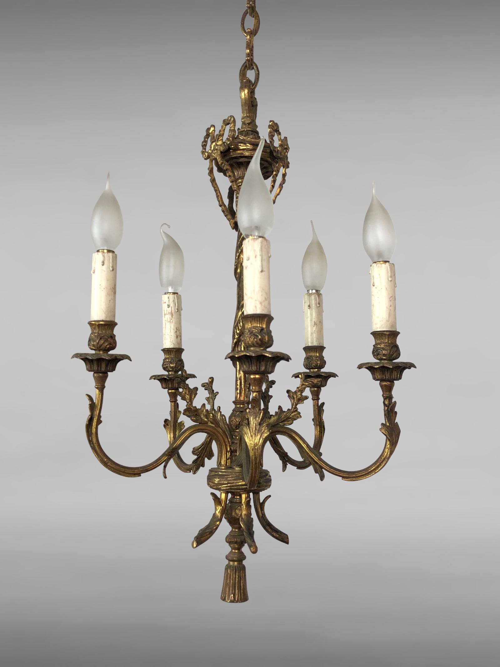 Pair of French Gilt Bronze Louis XVI Chandeliers Ribbon & Bow