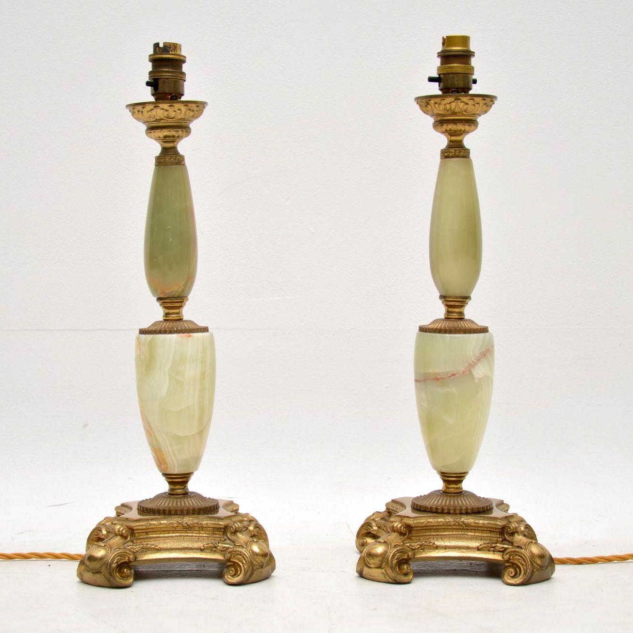 Pair of French Gilt Metal & Onyx Table Lamps c.1930 (1 of 1)