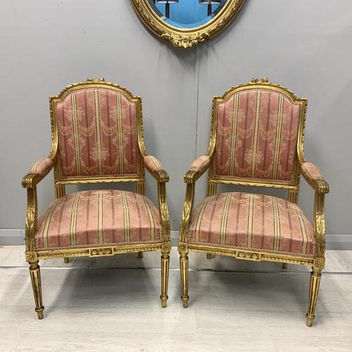 This Pair of French Gilt Open Armchairs is located in United Kingdom
